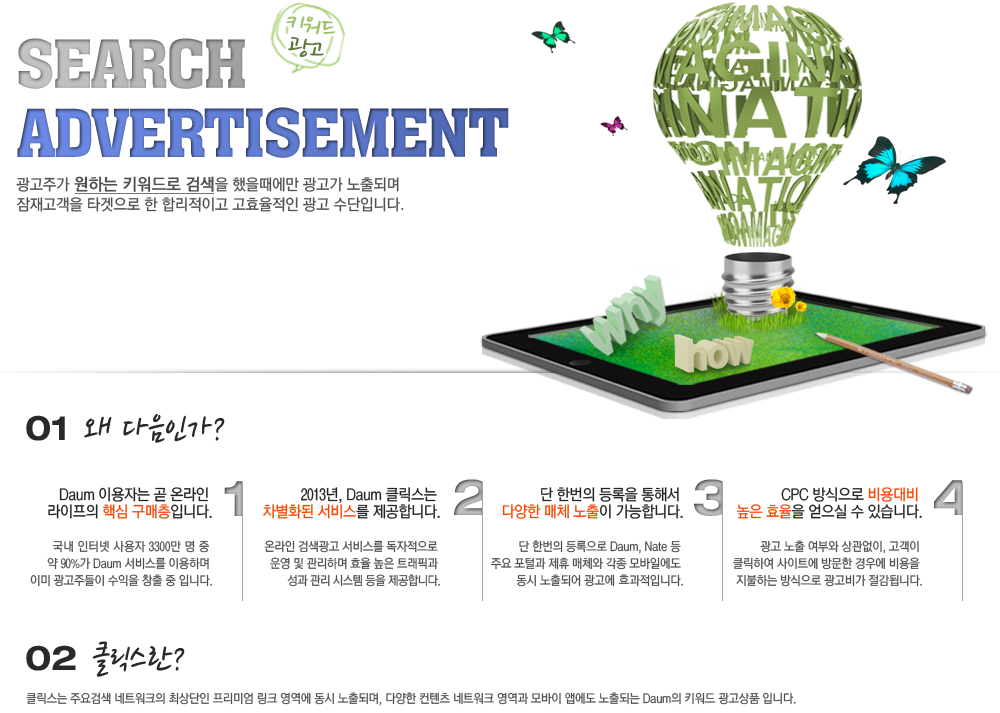| °ú±Ý¹æ½Ä | CPC(Ŭ¸¯ ´ç °ú±Ý¹æ½Ä - ¼ÒºñÀÚ°¡ ±¤°í¸¦ Ŭ¸¯ÇÏ°í ¿ì¸® »çÀÌÆ®¿¡ µé¾î¿Â °æ¿ì¿¡¸¸ ±¤°í°¡ ¹ß»ýÇÏ´Â ¹æ½ÄÀ¸·Î ´Ù¸¥ ±¤°í¿¡ ºñÇØ È¿À²¼ºÀÌ ¸Å¿ì ³ôÀ½) | ||||